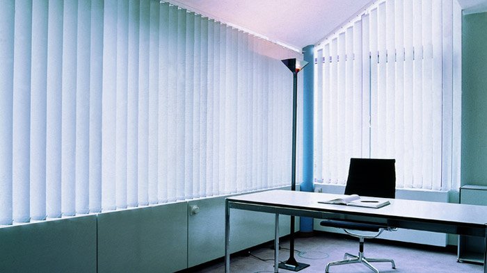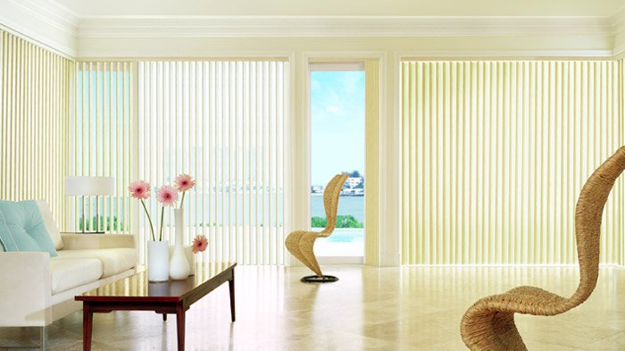 Vertical blinds are a great modern alternative to drapes and typical horizontal shades.